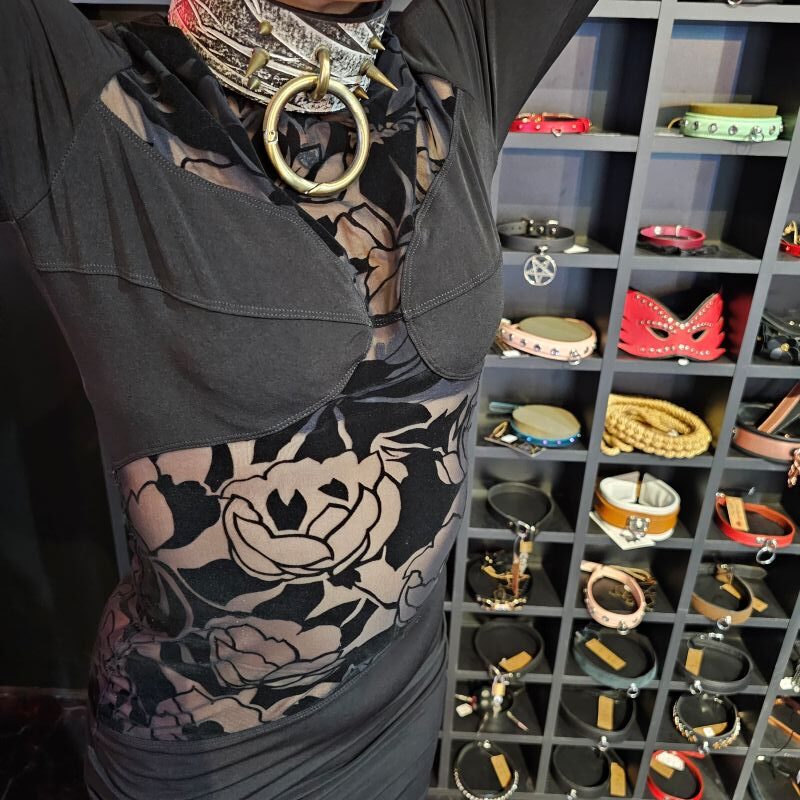 La salle qui donne sur la rue propose des accessoires BDSM et coquins : colliers d’appartenance, fouets, jouets d’impact, attaches et entraves… on se met rapidement dans l’ambiance des soirées domina, nuit demonia ou encore atelier kinky BDSM.